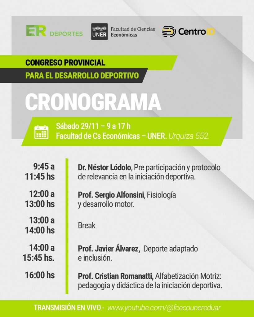 La Secretaría General de la Gobernación, encabezada por Mauricio Colello, a través de la Secretaría de Deportes, junto a la Universidad Nacional de Entre Ríos y el Centro Instituto para el Desarrollo del Deporte, llevará adelante el Congreso Provincial para el Desarrollo Deportivo, un espacio de formación, planificación y articulación institucional destinado a actores del sistema deportivo entrerriano.