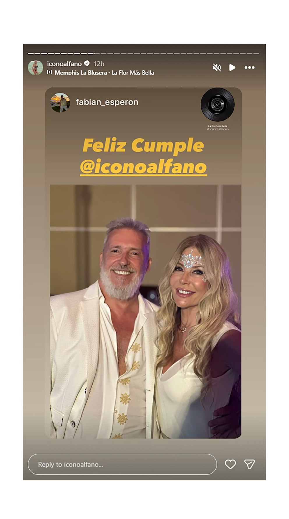 El homenaje fue completo con las palabras de Virginia Elizalde, que también formó parte de la cadena de cariño que acompañó a la diva en su gran día y que Alfano no dudó en repostear, agradecida por el afecto y la sororidad de una amistad que atraviesa diferentes etapas. También se sumó una familiar de su expareja y padre de dos de sus hijos, Enrique Capozzolo, quien le escribió: “Que lo cumplas muy feliz. Te quiero”.