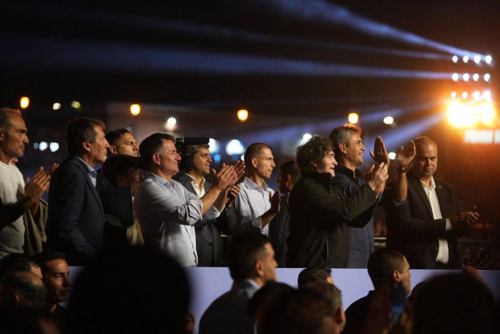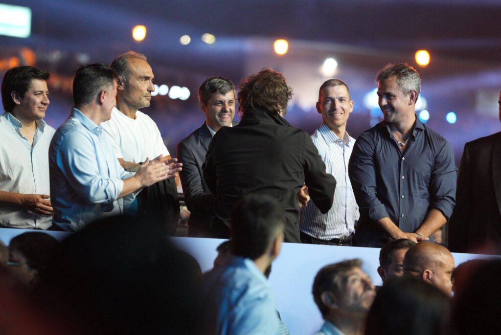 En un momento de gran expectativa Milei hizo su ingreso por el campo, atravesandolo entre miles de personas, hasta llegar al palco de autoridades.