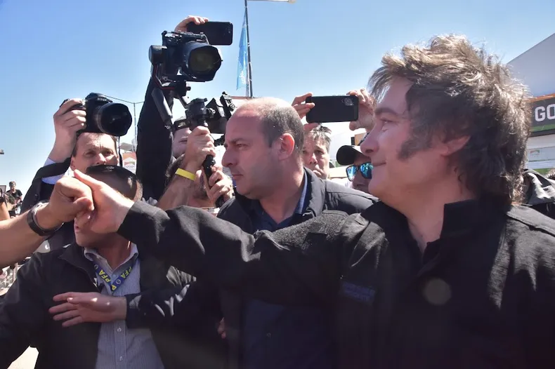 Cuando aterrizó el helicóptero presidencial, en la Carpa Pampero Agronegocios, el escenario elegido por razones de seguridad para el discurso de Milei, no cabía un alfiler. Afuera, tras un vallado, se empezaban a agolpar los curiosos, los que fueron a verlo y el periodismo.